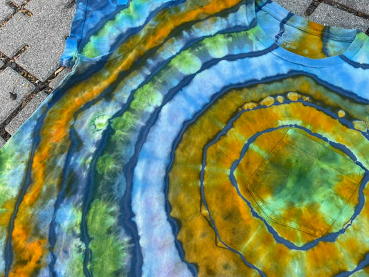 Tie Dye Blue/Green/Orange Geode Pocket Tee (Medium)